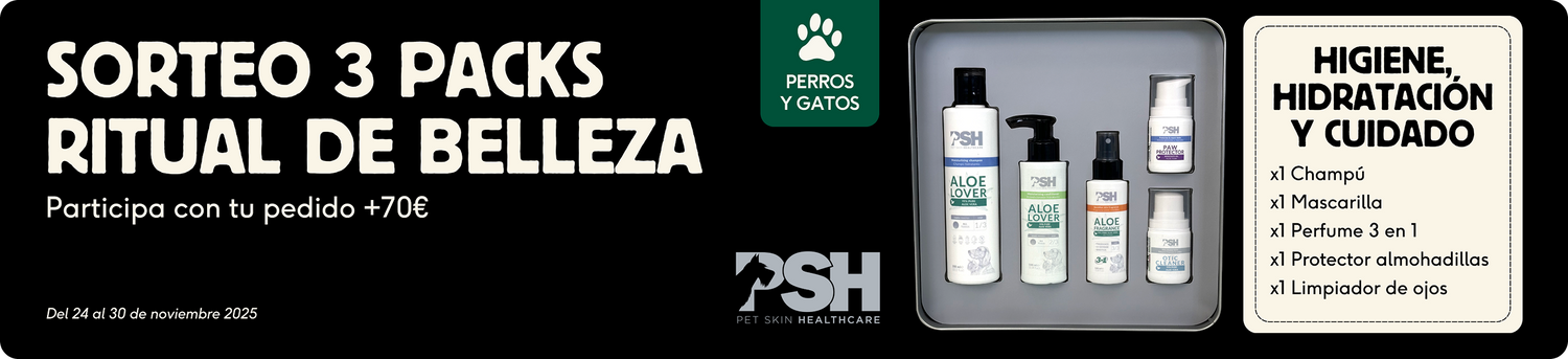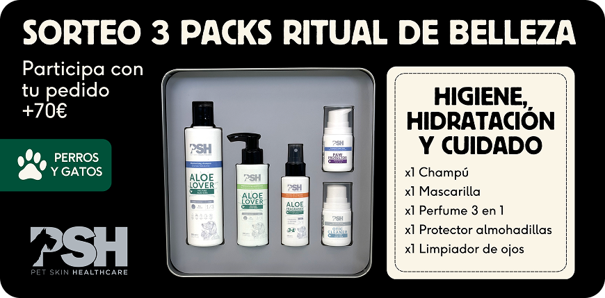 - Pack PET BOX - RITUAL DE BELLEZA de PSH Cosmetics (Gama Aloe Lover: Champú, Acondicionador, Fragancia, Bálsamo protector de almohadillas y Bálsamo de limpieza de oídos).